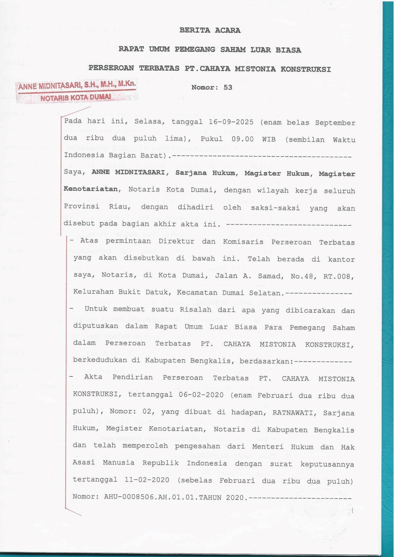 PT. Cahaya Mistonia Konstruksi