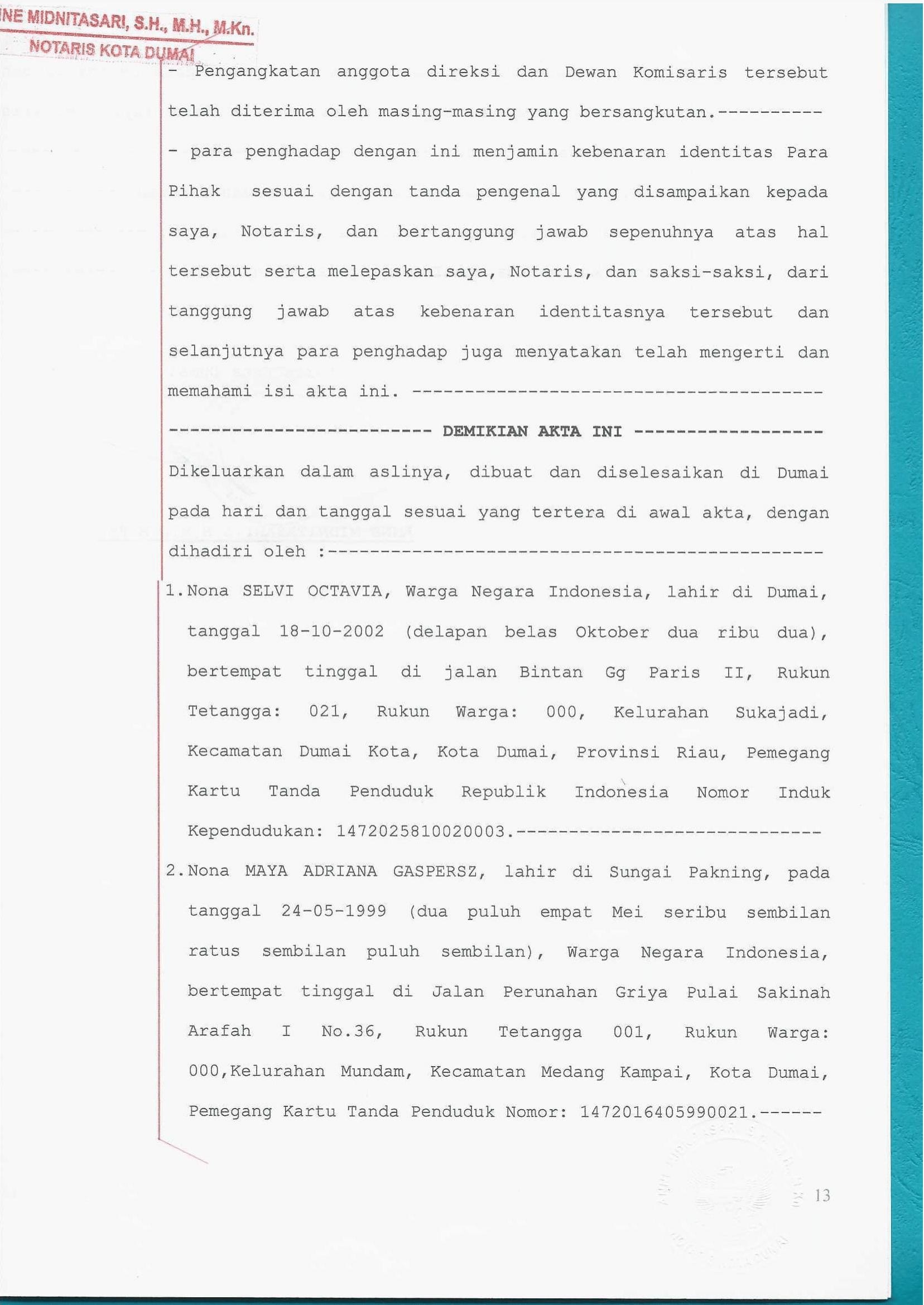 - Penerapan prinsip kehati-hatian dalam setiap pengambilan keputusan dan tata kelola perusahaan yang terbaik (Good Corporate Governance).